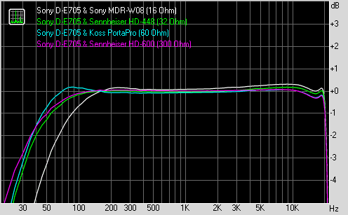 | Sony D-E705, intermodulation distortions with headphones, several impedances |